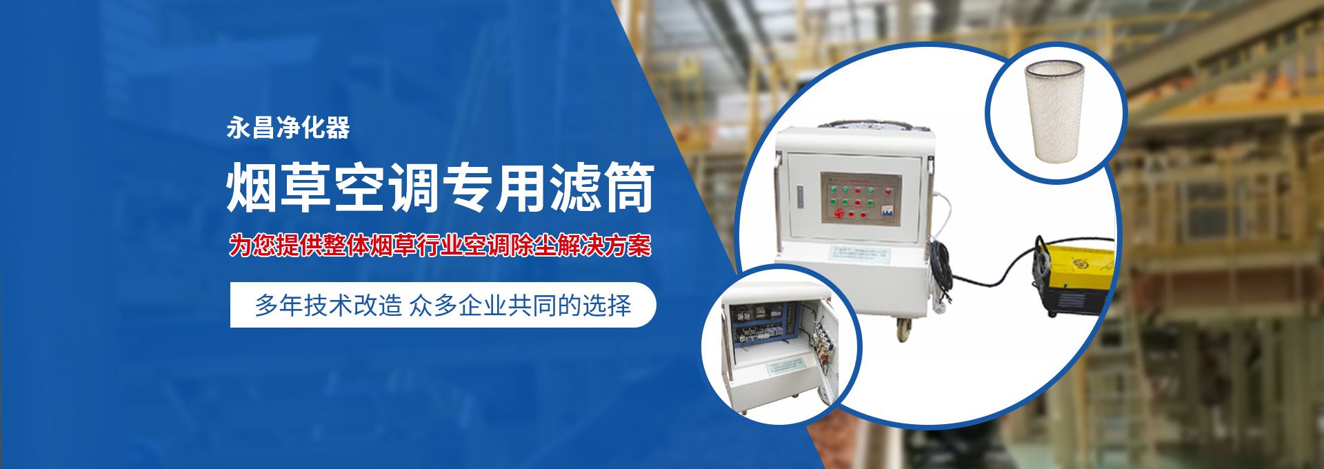 新鄉(xiāng)市永昌凈化器有限公司是生產(chǎn)煙草行業(yè)空調(diào)除塵專用濾筒的企業(yè)。注冊資金1000萬元。已通過ISO9001國際質(zhì)量管理體系認(rèn)證。對產(chǎn)品有嚴(yán)格的管理制度和售后服務(wù)。我公司以誠信、負(fù)責(zé)、守信譽(yù)、重質(zhì)量的精神所生產(chǎn)的產(chǎn)品,近幾年來在煙草行業(yè)受到廣泛應(yīng)用,并受到用戶的一致好評。  從一九九四年以來為煙廠的空調(diào)設(shè)備服務(wù)。十幾年來,我們不斷走出去請進(jìn)來學(xué)習(xí)新技術(shù)。定期到用戶那里咨詢情況:互相交流,認(rèn)真聽取寶貴意見,不斷提高產(chǎn)品質(zhì)量。從經(jīng)濟(jì)和安全,方便的角度出發(fā),根據(jù)煙廠濕度大的生產(chǎn)環(huán)境和濾筒收集到的含酸堿、氧化劑的粉塵。在空調(diào)箱工作狀態(tài)下我們頂著巨大的風(fēng)壓危險在箱內(nèi)停留了幾分鐘,認(rèn)真查看濾筒工作情況,發(fā)現(xiàn)濾筒有并死狀態(tài),造成濾筒不過濾、不過風(fēng)、壓差高的現(xiàn)象。經(jīng)幾十次試驗分析,在標(biāo)本兼治的原則下,有針對性的解決了這一問題。  我公司針對煙廠制絲、卷接包、混絲間、儲絲房、冷卻床、梗膨化等不同的生產(chǎn)環(huán)境,